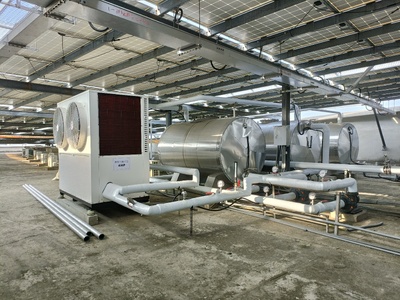 三、整合備勤室熱泵與電熱水器系統,搭配電磁閥與DIO控制器,強化熱水供應的智慧節能管理。