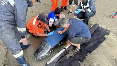屏東海口沙灘驚現擱淺海豚!海巡急救「瑞氏海豚」全程曝光 網友關注鯨豚保育