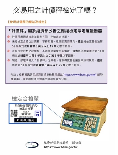 標準檢驗局高雄分局度量衡科科長蔡昇諺近日提醒,近期已有多家進口業者因不熟悉相關法令規定,未依規定送驗計價用電子秤及相關度量衡器具,導致違規受罰。他特別透過電子郵件向相關公會轉知,籲請所有會員進口業者務必注意,確實完成檢定並黏貼「檢定合格單」,以免觸法。
