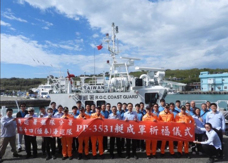 海巡署艦隊分署「35噸級新式巡防艇」再添新兵!由 中信造船股份有限公司 建造完成的第 41 艘 PP-3531艇,今(3)日上午 8 時由第十四(恆春)海巡隊分隊長 謝競家 正式接艇,自高雄港啟航返抵後壁湖基地,並立即舉行祈福儀式,象徵新艇正式編入隊伍,成為守護臺灣南端的全新海上戰力。