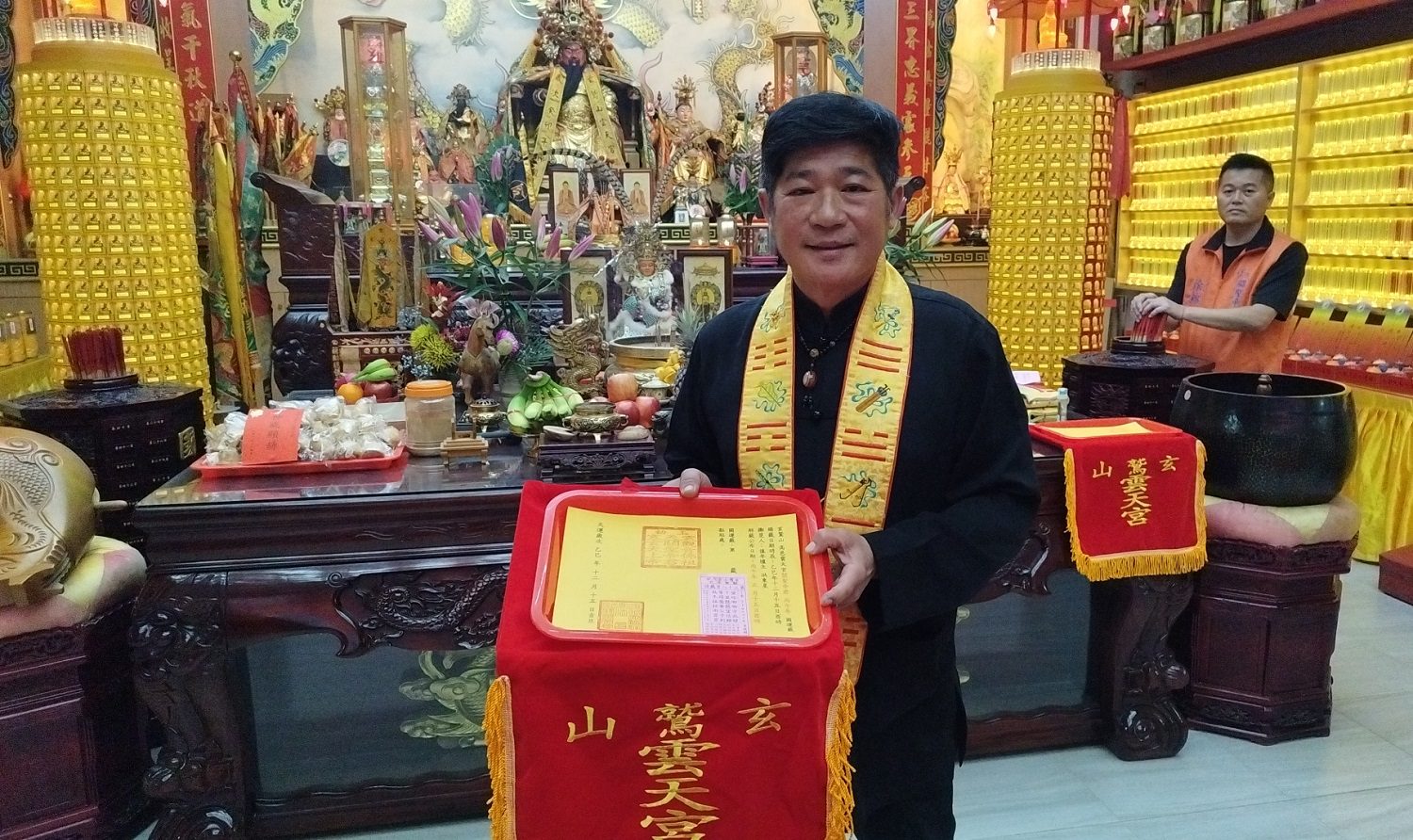 ▲高雄市鳥松區玄鷲山高邑雲天宮依循古禮抽出明年丙午年的「年度國運籤」,結果為第三十八號下下籤。(圖/記者陳立驌攝)