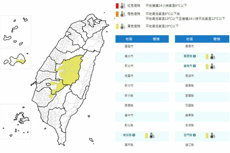 生活中心/綜合報導 今天2月11日至明天12日清晨鋒面通過及東北季風增強,北部及東北部白天氣溫稍有下降,各地早晚偏涼;氣象署今晨發出低溫特報,受輻射冷卻影響,各地氣溫明顯偏低,上午低溫區域有:南投、嘉義縣、臺南、金門有10度以下低溫發生的機率,請注意。 降雨方面,基隆北海岸、臺灣東半部地區及恆春半島有局部短暫雨,大臺北地區、北部山區及馬祖有零星短暫雨,其他地區及澎湖、金門為多雲到晴。