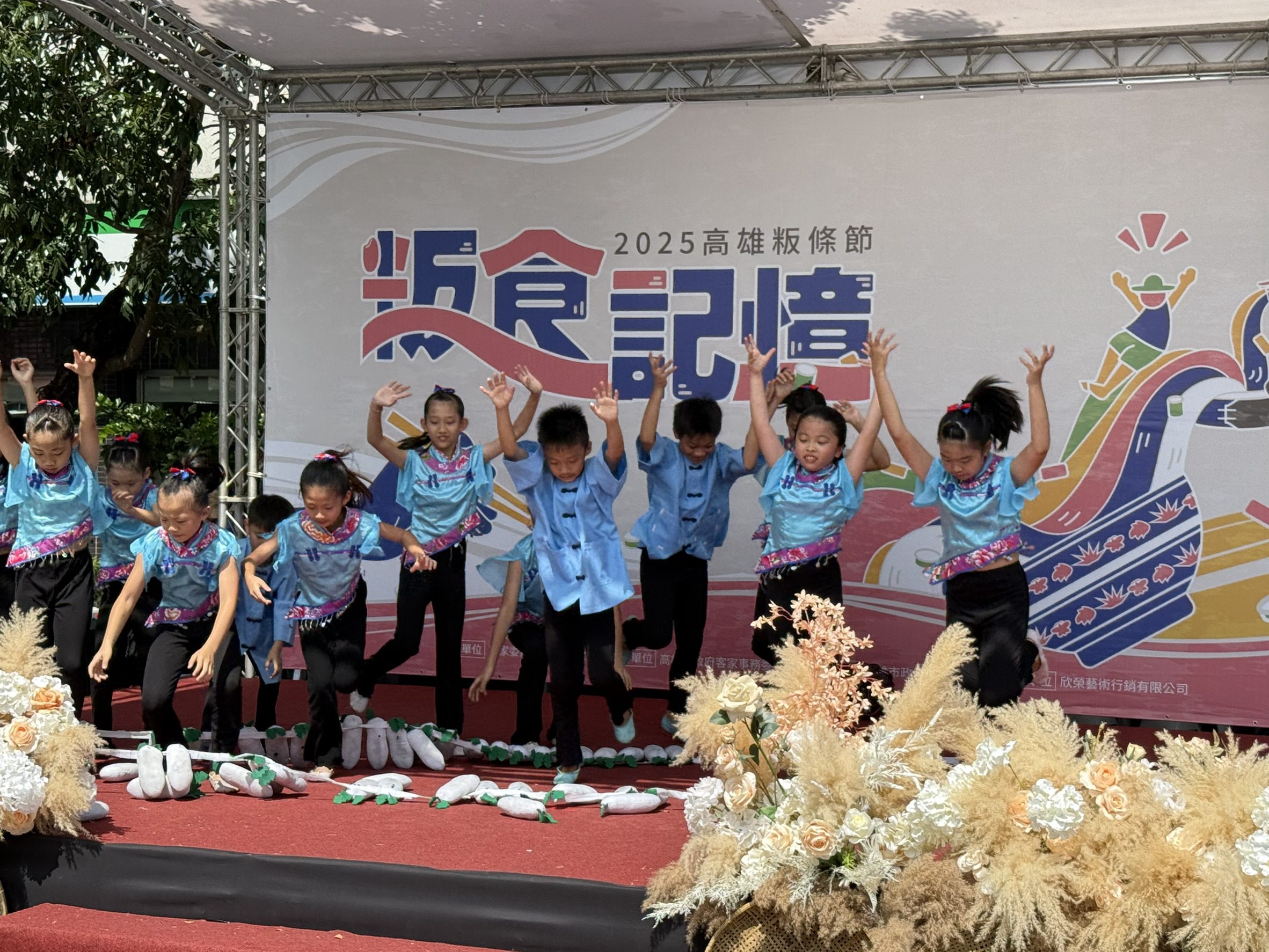 高雄市美濃國小今(11)日在「2025高雄粄條節—粄食記憶」開幕式上,以歌謠隊學生的精彩演出揭開序幕。孩子們以純真的笑容與充滿活力的律動,唱出屬於家鄉的故事,為現場注入滿滿溫情,讓秋陽下的美濃文創中心開庄廣場瀰漫著米香與濃厚人情味。